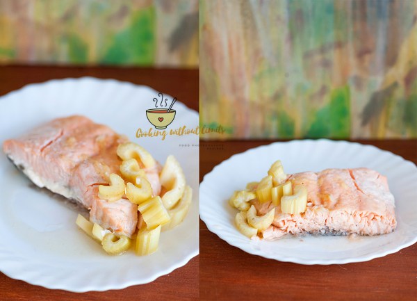 Crazy thing happened a few days back. I went to the market to buy leeks to make a cream soup and I got home with celery. I did not even realize what I was buying. I thought it is what I needed. So, I had to improvise because I never made a soup with celery. So I made salmon with celery.