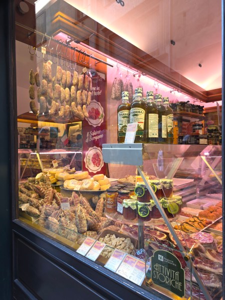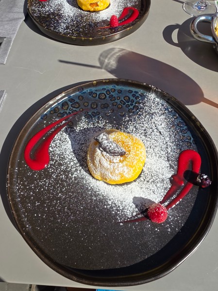 In Piazza Vecchia, for dessert, I explored Polenta e osei, created in 1910 by Alessio Amadeo at Pasticceria Milanese. This dessert is a sweet tribute to rural tradition, reimagining an old peasant dish that consisted of cornmeal (polenta) served with small hunted birds (osei), such as larks or thrushes. Visually, the dessert mimics a warm mound of polenta. It is made of sponge cake filled with chocolate, hazelnut, or butter creams, covered with a thin layer of yellow marzipan. On top sit small birds made of chocolate or marzipan, dusted with granulated sugar to symbolize the “osei” from the original recipe.