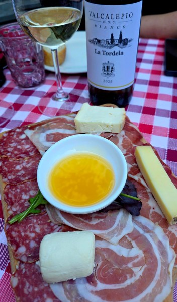 I enjoyed them on the terrace of Bistro Mimì, immersed in an authentic atmosphere while leafing through “111 Traditional Bergamasque Recipes.” This was accompanied by a Valcalepio DOC (a blend of Pinot Blanc, Pinot Grigio, and Chardonnay). Light straw-yellow in color, this wine is characterized by fruity and floral notes, having been aged for three months in steel barrels.