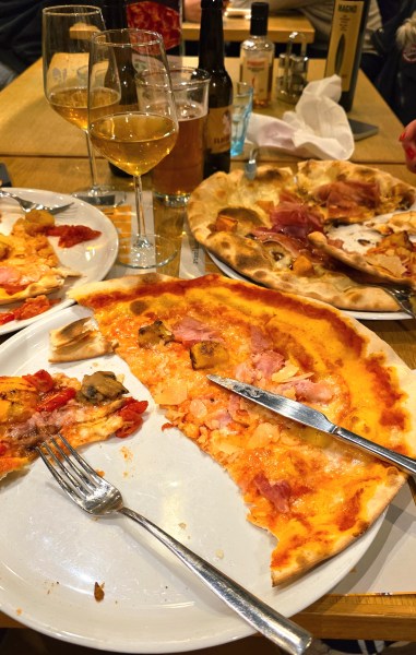 At Pizzikotto, that ultra-thin and crispy crust isn’t just an option—it’s an absolute must. It serves as the perfect canvas for drops of chili oil that deliver an immediate spicy kick. To balance the heat, an unpasteurized birra chiara steps in: a ribbon of liquid gold, crisp and unexpectedly fragrant. Its raw freshness and floral notes cut right through the oil’s spice, creating a fluid contrast between the pizza’s scrocchiarella texture and the beer’s vibrant character, which cleanses your palate and readies you for the next slice.