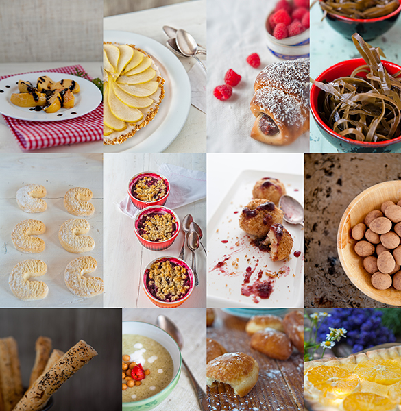 glazed quinces and chocolate syrup pear and yogurt tart raspberry jam croissant green algae salad christmas cookies plum crumble papanasi - romanian dumplings with cheese chocolate truffles poppy seeds sticks broccoli and cheese soup doughnuts orange tart