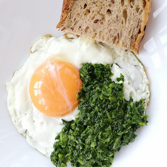 Egg and light green pesto My morning power in the spring is greens. I leave the cereal for other days and start my morning with something green: smoothie, pesto, pie, etc. So here is this morning plate: 1 egg from my neighbor’s chicken1 slice of breads with seeds3-4 table spoons of light green pesto If… Continue reading Morning power – egg and light green pesto